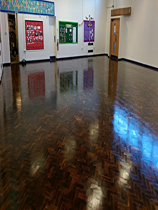 We were recently contacted to quote for a school hall restoration. The floor was parquet construction, and had been previously maintained by the school caretaker.